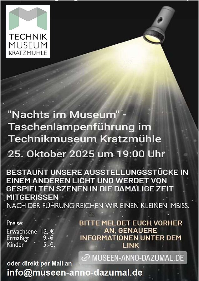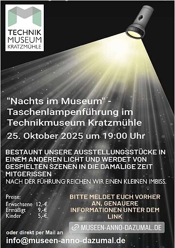 Taschenlampenführung im Technikmuseum Kratzmühle