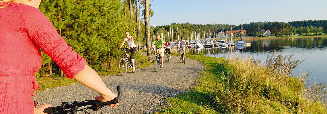 Das Wasser ist ein fast ständiger Begleiter für Radler auf dem rund 460 Kilometer langen Fränkischen WasserRadweg. Auf ebenen Strecken am Fluss- und Seeufer erkunden sie drei abwechslungsreiche Urlaubslandschaften – das Fränkische Seenland, das Romantische Franken und den Naturpark Altmühltal.